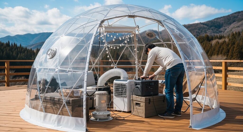 イージードームハウスで住んでみた目線で設置環境と断熱電源確保の手段居住空間と家具メンテナンス性の選び方4つを整理します。用品6選と消費電力や耐候性の比較基準購入時の結露固定許可の注意点も紹介します。 -