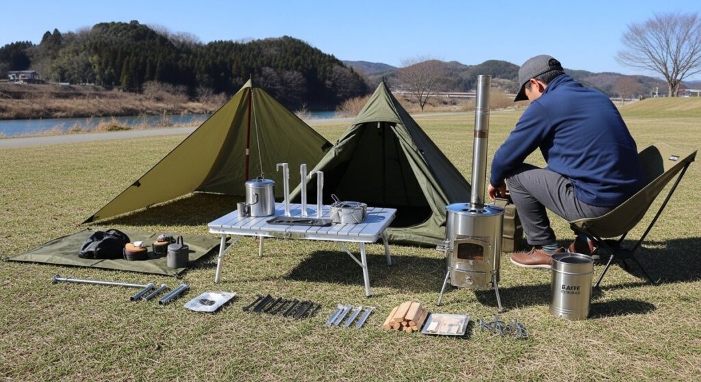 バンドックソロベースを冬に使うなら、スカート付きEXモデルや前幕の有無、薪ストーブ設置可否、冷気を遮るグランドシートが重要です。関連アイテム6選と比較基準も整理し後悔しない冬装備を解説します。 -