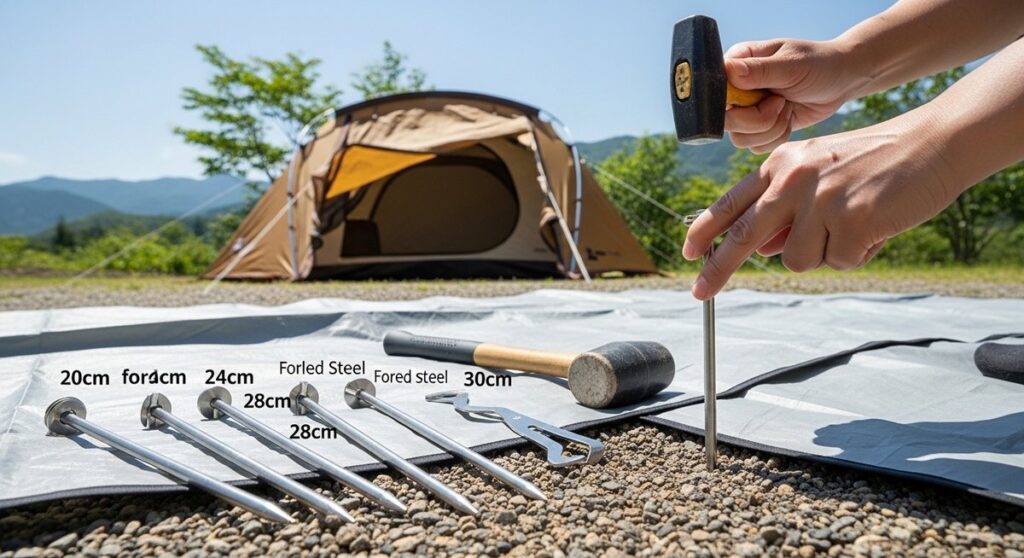 ペグの長さはテントサイズと地面の硬さ風の強さ携行性で決まります。30cm級が効く場面や20cmで足りる条件も整理し素材や本数ヘッド形状の比較から曲がり錆対策まで分かりやすく解説します。 -