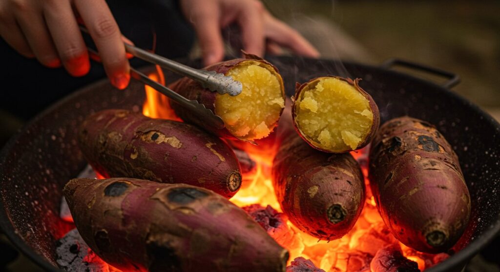 焚き火で誰でも甘くできる焼き芋の作り方|火加減と包み方のコツ