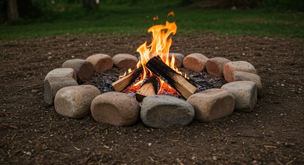 石で安全に火力を安定させる焚き火の組み方ガイド