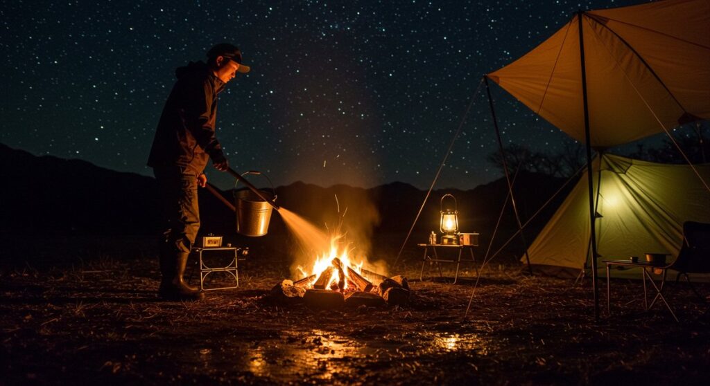 夜のキャンプで焚き火を安全に消す方法|寝る前の準備とチェックリスト