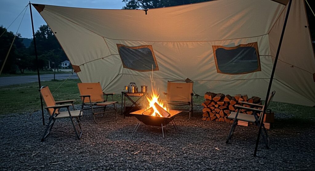 タープの下で安全に焚き火を楽しむ方法|素材選びから配置・消火まで徹底ガイド