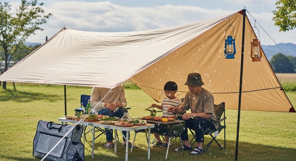 タープの下で雨や風を気にせずBBQを楽しむための必須チェック