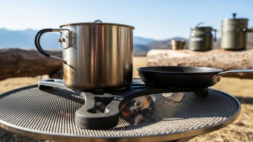 メッシュ焚き火台の五徳で失敗しない料理術!安定性と耐久性で選ぶポイント