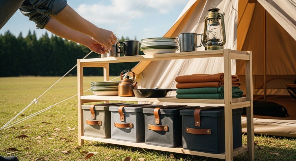 キャンプで使える棚を自作して収納力と使い勝手を即アップ