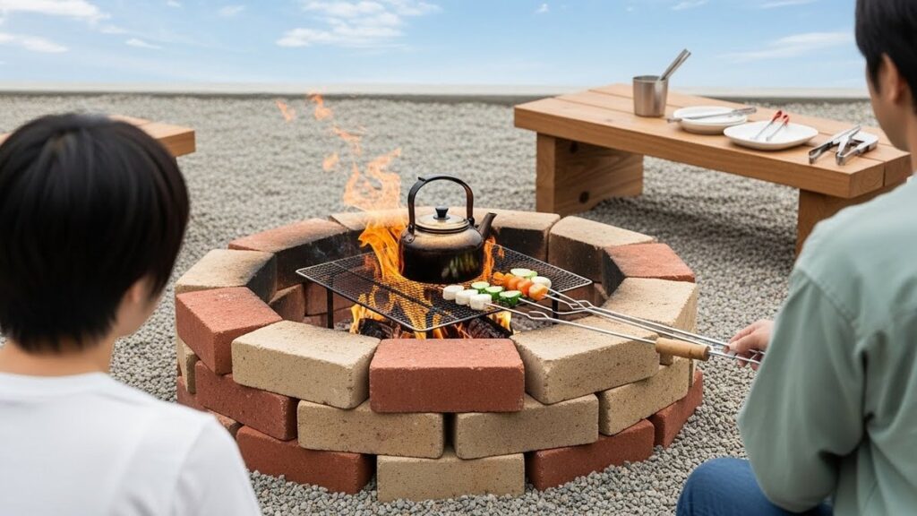レンガで作る安全な焚き火台ガイド|設置から料理までわかる