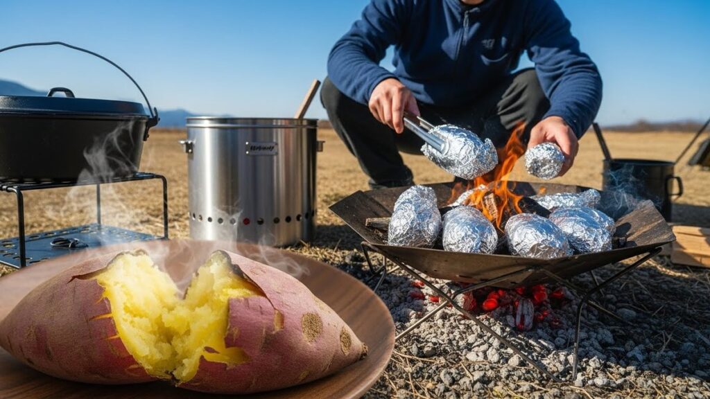 焚き火で焼き芋を甘く焼くコツを紹介。熾火の作り方やおすすめ道具をまとめました。焦げを防いでキャンプを楽しもう。 -