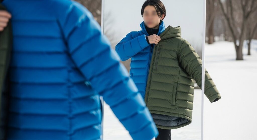 175cmのマウンテンダウンジャケットのサイズ感を解説。着こなし別の選び方や人気モデルとの比較を簡潔に紹介します。 -
