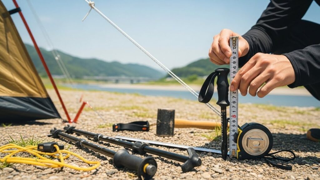 小川張りに最適なポール長さを前側と後ろ側の目安から解説します。タープサイズや風、設営人数に合わせた調整法も紹介します。素材や伸縮式の選び方、試し張りで最適化する手順まで分かりやすくまとめました。 -
