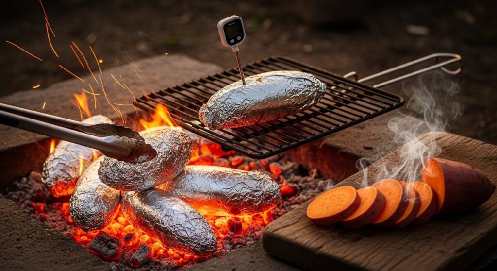 焚き火で甘い焼き芋を焼く手順を解説。ホイルの包み方など失敗を防ぐコツを紹介。便利な専用ギアも厳選しました。 -