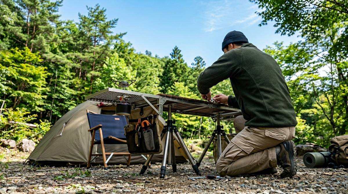 慣れてしまえば数分で設置可能ですが、雨天時や夜間の設営を想定すると、よりシンプルな「38ex-table」のようなモデルの方がストレスが少ない場合もあります。しかし、組み立ての工程そのものがキャンプの儀式として楽しめると感じるなら、多機能モデルの複雑さはむしろメリットに変わります。