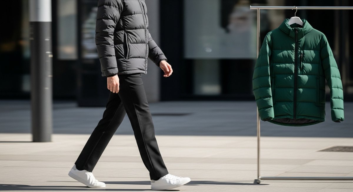 特に、肩幅がピッタリすぎると肩が角張って見え、ラグビー選手のような体型に見えてしまうことがあります。また、ジッパーを閉めた際にお腹周りにシワが寄るようなサイズ感は、非常に窮屈そうでスマートさを欠きます。オーロラダウンを格好良く着こなすには、「身体と服の間に適度な空間(ゆとり)」が必要です。その空間があることで、服の重みで生地が下に落ち、美しいドレープ(流れ)が生まれます。ジャストサイズに固執せず、シルエット全体を客観的に見る余裕を持ちましょう。