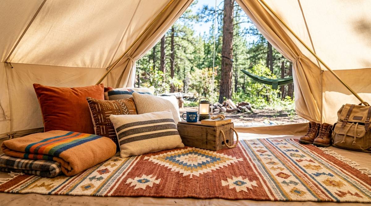 お座敷スタイルのラグは、テントに入った瞬間に最も目に入る面積が広いアイテムです。そのため、ラグのデザイン一つでサイト全体の雰囲気がガラリと変わります。自分のキャンプスタイルに合わせたカラーや柄を選ぶことが、満足度を高めるポイントです。