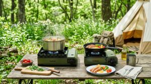 調理器具は鍋やガス缶をスタッキングして一体化すると省スペースになります。小物は内部ポケットやメッシュ袋にまとめて固定してください。揺れで外れると面倒なので、しっかりと縛るか圧縮して安定させましょう。