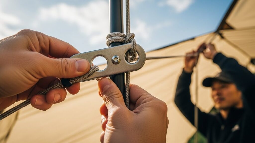 自在金具の2つ穴の使い方をマスターして設営を楽にしよう