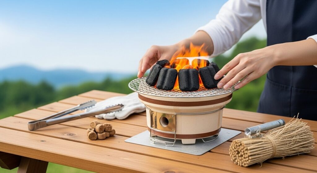 七輪で失敗しない火おこし術|炭と着火剤で最短着火と安全な消火法