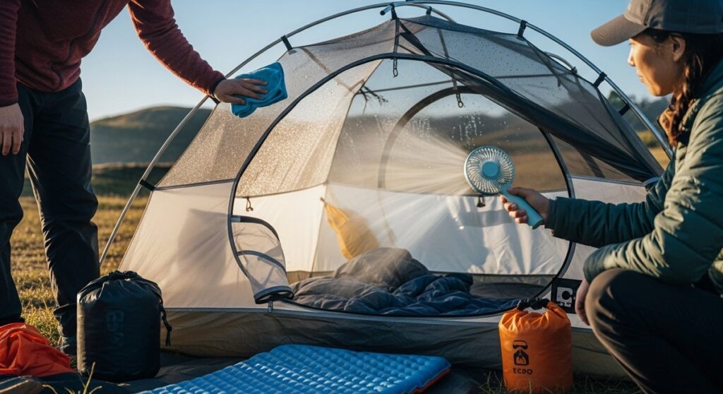 テントの結露を翌朝までに速く乾かす方法!現地でできる簡単テクニック