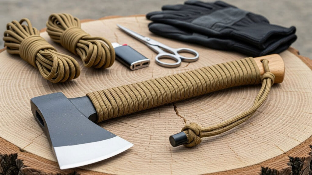 斧にパラコードを巻いて使い勝手アップ!グリップの安定や結び方のコツを紹介