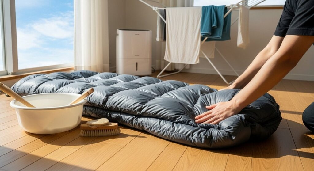 ナンガのシュラフを家庭で安全に洗う方法|乾かし方とふっくら戻すコツ