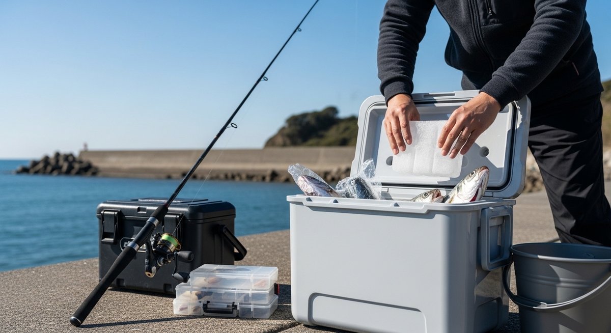 特にコンクリートの堤防は、太陽光を吸収して非常に高温になります。ここに直置きすると、底面から熱が伝わり、中の魚が傷んでしまう原因になります。100円ショップのアルミシートをクーラーの底に貼るだけでも、地熱対策としては非常に有効です。物理的に熱を遮断することが、安いクーラーを使いこなすコツです。