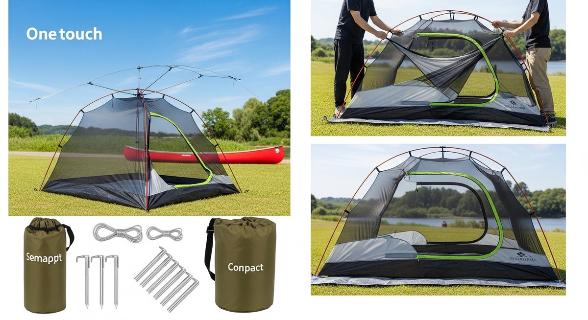 真に「速い」モデルを選びたいのであれば、折りたたみ傘のように中央の紐を引くだけ、あるいは支柱を押し上げるだけで完成する「傘式」のメカニズムを採用しているものに注目しましょう。これにより、初心者でもわずか15秒から30秒程度で居住空間を確保することが可能になります。