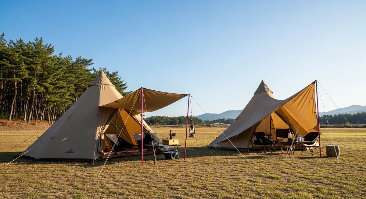 テントを選ぶ際には、キャンプ場での設営スペースも考慮に入れる必要があります。サーカスTC自体は5角形の底面を持つテントですが、DXモデルの場合はさらに注意が必要です。