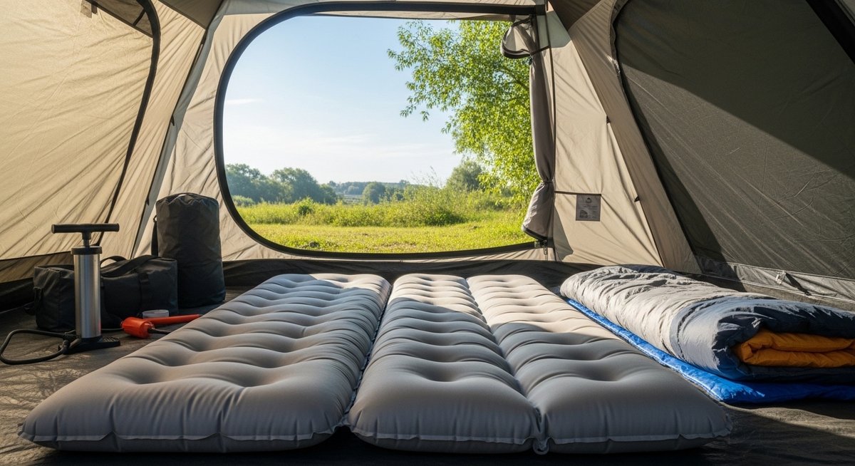 キャンパーインフレーターマットハイピークを購入する際、最も多い失敗が「テントに入らなかった」というケースです。このマットは厚みが10cmもあるため、テントの端の方に置くと、テントの傾斜した生地と干渉してしまいます。平面のサイズだけでなく、厚みを考慮した上での配置計画を立てる必要があります。