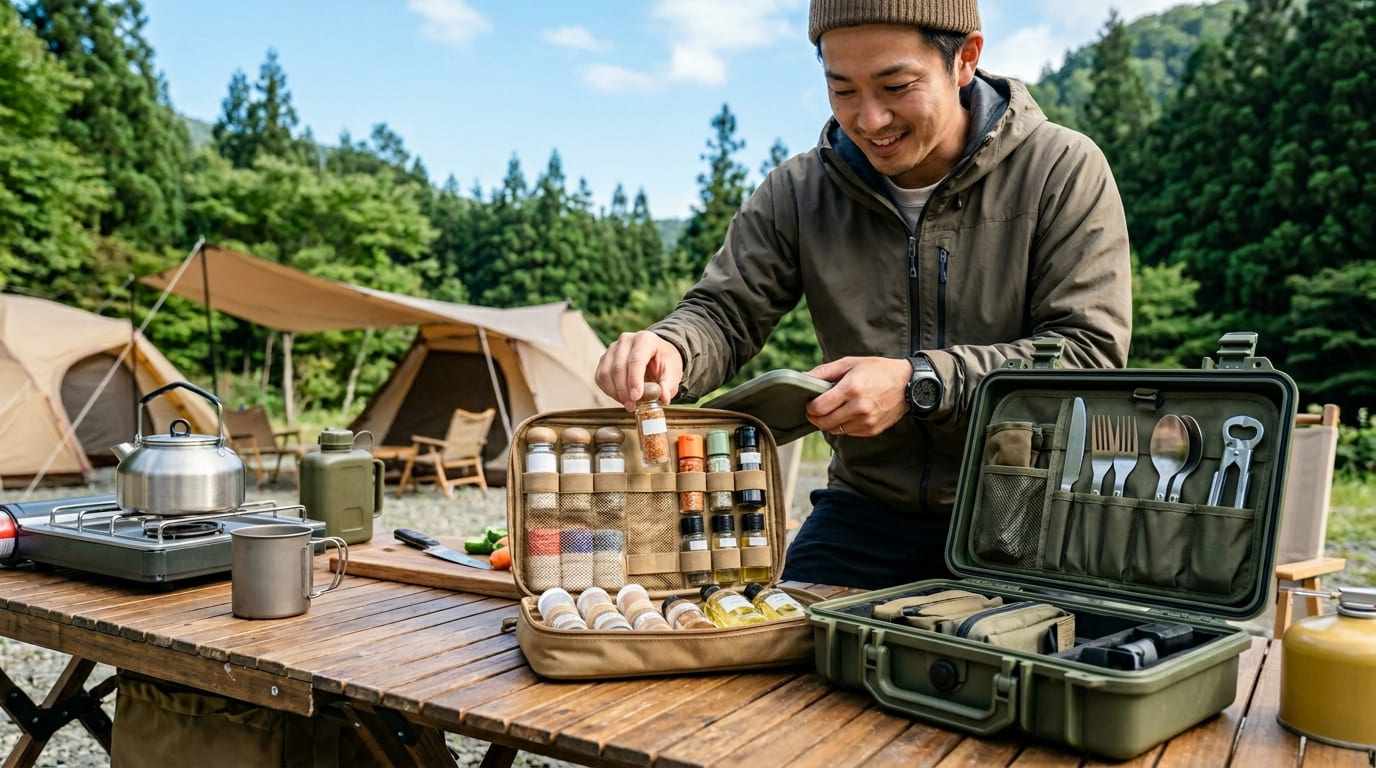 本記事でご紹介した選び方のポイント——容量、仕切り、耐久性、そして見た目——を一つずつ確認しながら、あなたの手元にある調味料たちの顔ぶれを思い出してみてください。お気に入りのスパイスが綺麗に並び、必要な時にサッと取り出せる。そんなストレスフリーな環境が整えば、キャンプ料理の時間は今よりもっとクリエイティブで楽しいものになるはずです。使い勝手の良いスパイスボックスを導入することで、散らかりがちなテーブルの上が整い、家族や友人との会話を楽しむ余裕も生まれるでしょう。