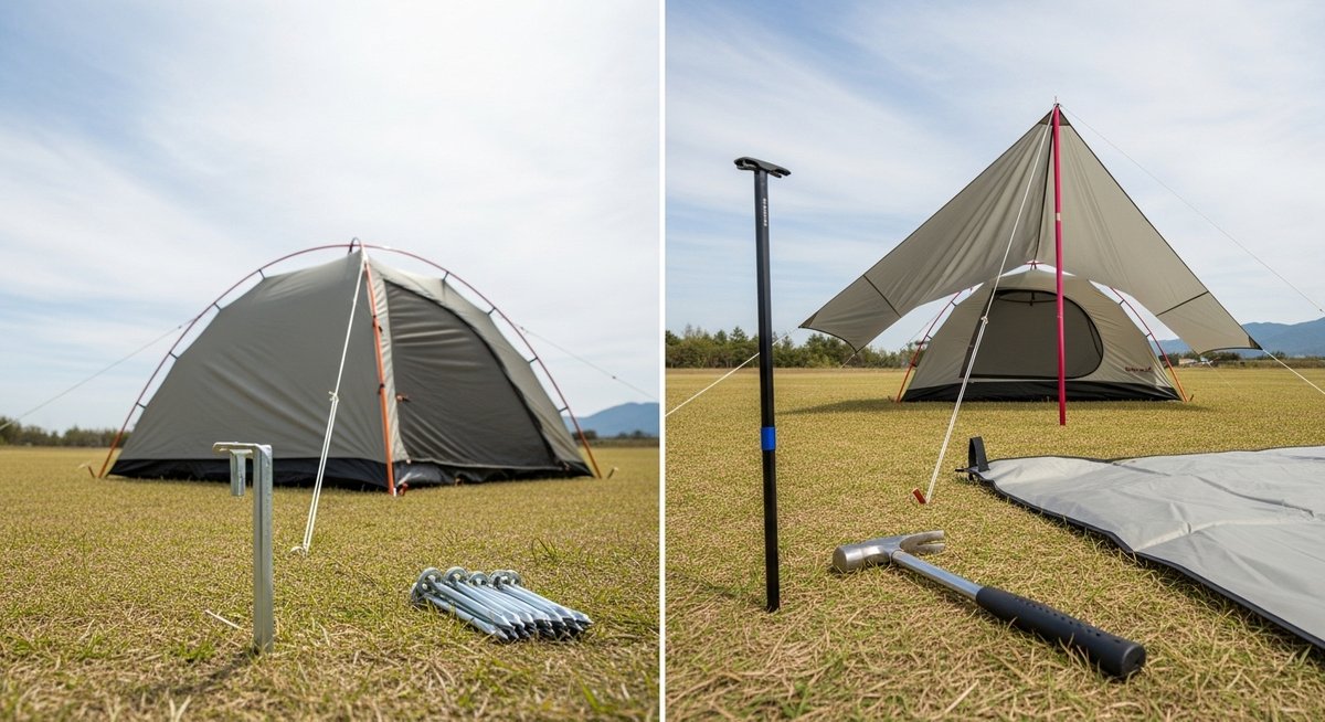一般的に、テントセットに付属するスチールペグは芝生などの柔らかい地面には適していますが、砂利混じりの硬いサイトでは打ち込みに苦労することがあります。設営をより快適にするためには、付属品をそのまま使うだけでなく、必要に応じて高品質なペグやハンマーを買い足すという視点を持つことが「充実度」の本当の意味での判断基準となります。最初からすべてが揃っている安心感は、初心者にとって大きな支えになります。