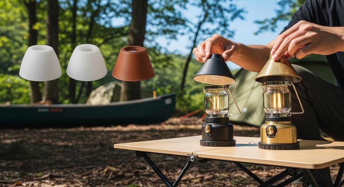 また、レザー製のシェードも見逃せません。本革を使用したシェードは、光を優しく反射し、キャンプサイトに温かみのあるクラシックな雰囲気をもたらします。ステッチのデザインや革の色味によって個性を出しやすく、ウッド系のテーブルやチェアとの相性が抜群です。