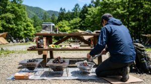 設置場所も重要です。幕の中央に配置すれば四方をリビングとして贅沢に使えますし、端に寄せれば広大な土間スペースを作り出せます。アレンジの自由度を優先するなら、簡単に移動ができる軽量なソロ用・デュオ用テントを組み合わせるのがおすすめです。自分のキャンプスタイルが「お座敷スタイル」なのか「ロースタイル」なのかを明確にし、それに最適なインナーテントの高さと面積を計算することで、ランドステーションは真の快適さを発揮します。