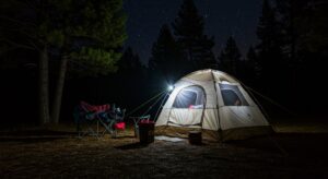 ランタンはバッテリー式、ガス式、ホワイトガソリン式などがあり、用途で使い分けます。バッテリー式は手入れが楽で耐水性の高いモデルが多く、点灯時間も安定しています。ガス式は寒冷地での燃焼が安定しやすく、ホワイトガソリンは明るさと火力に優れますがメンテが必要です。
