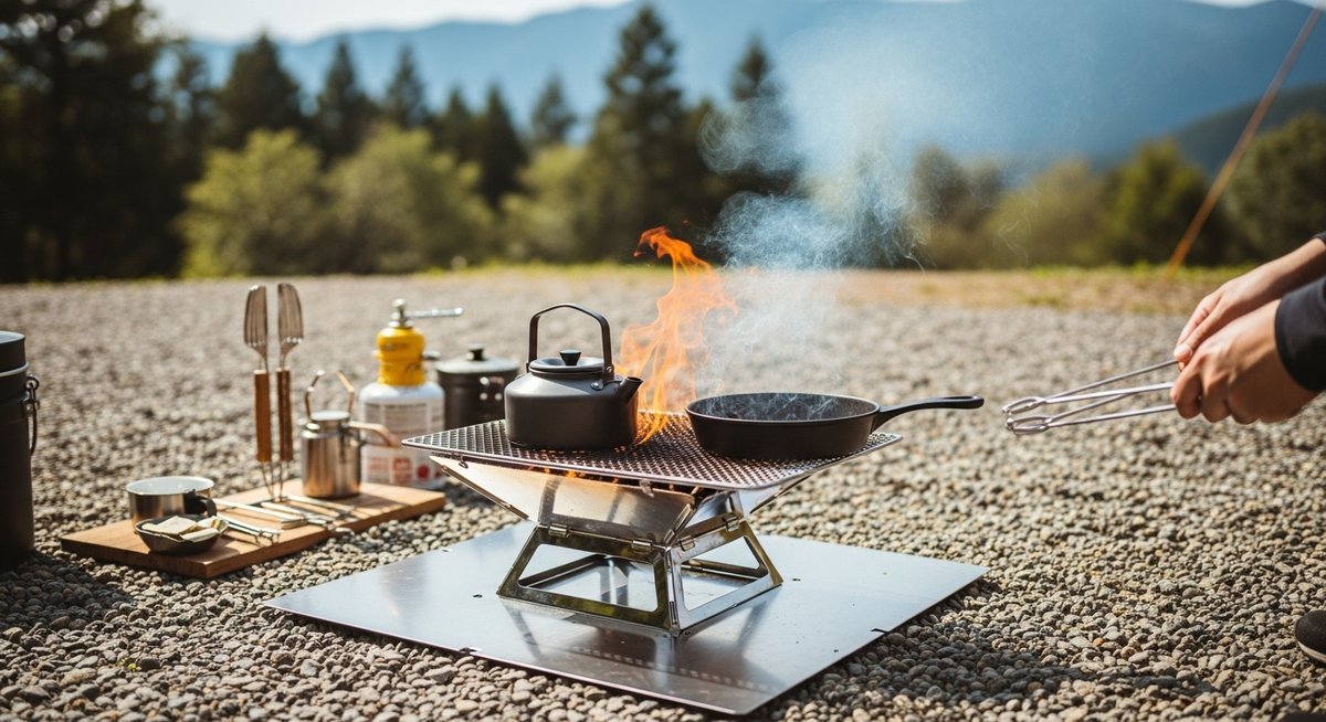 周囲に可燃物がないかを確認し、テントやギアとの距離を十分に取ります。視界が開けている場所は避け、他のサイトへの煙の影響も考慮して設置位置を決めましょう。