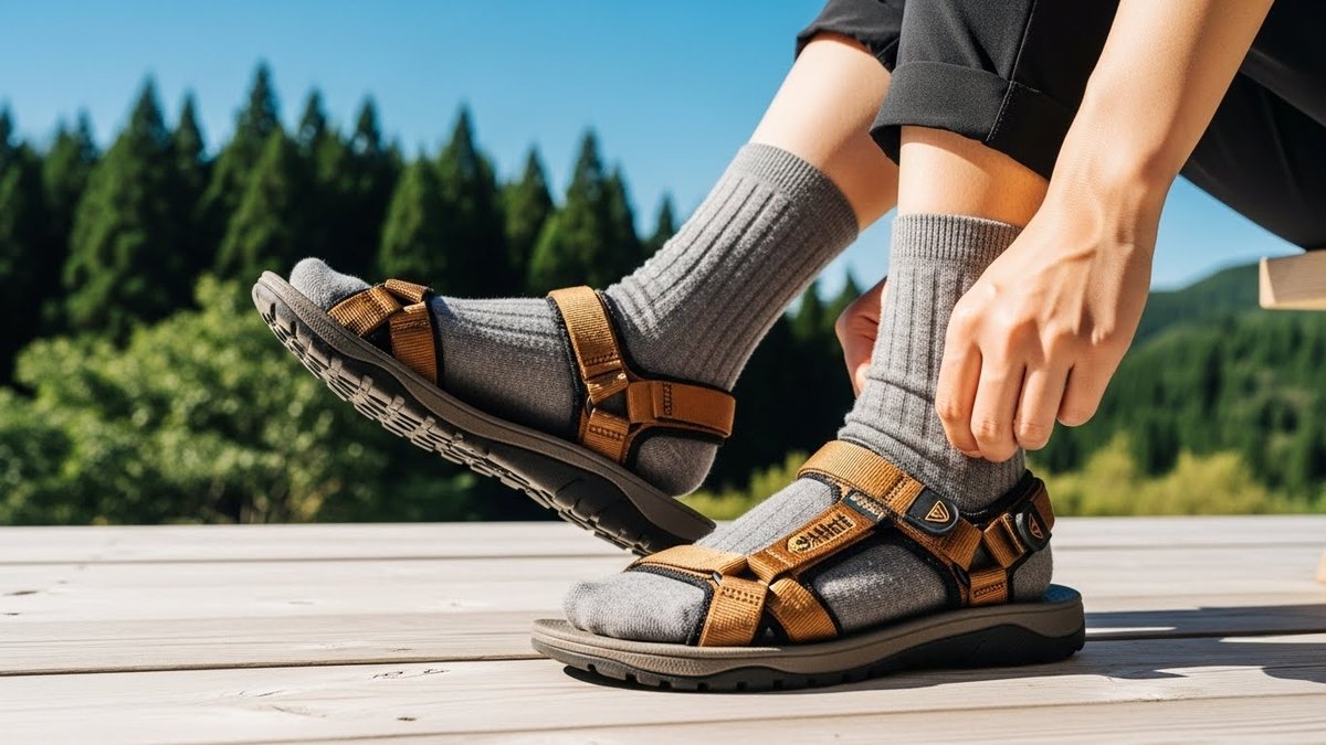 モンベルのサンダルは、公式でも「靴下を履いたままの着用」を推奨しているほど、ソックスとの相性が抜群です。直接肌にストラップが触れないだけで、摩擦による痛みはほぼゼロになります。特に5本指ソックスや足袋型のソックスを選べば、ロックオンサンダルの独特な形状にも完璧にフィットします。
