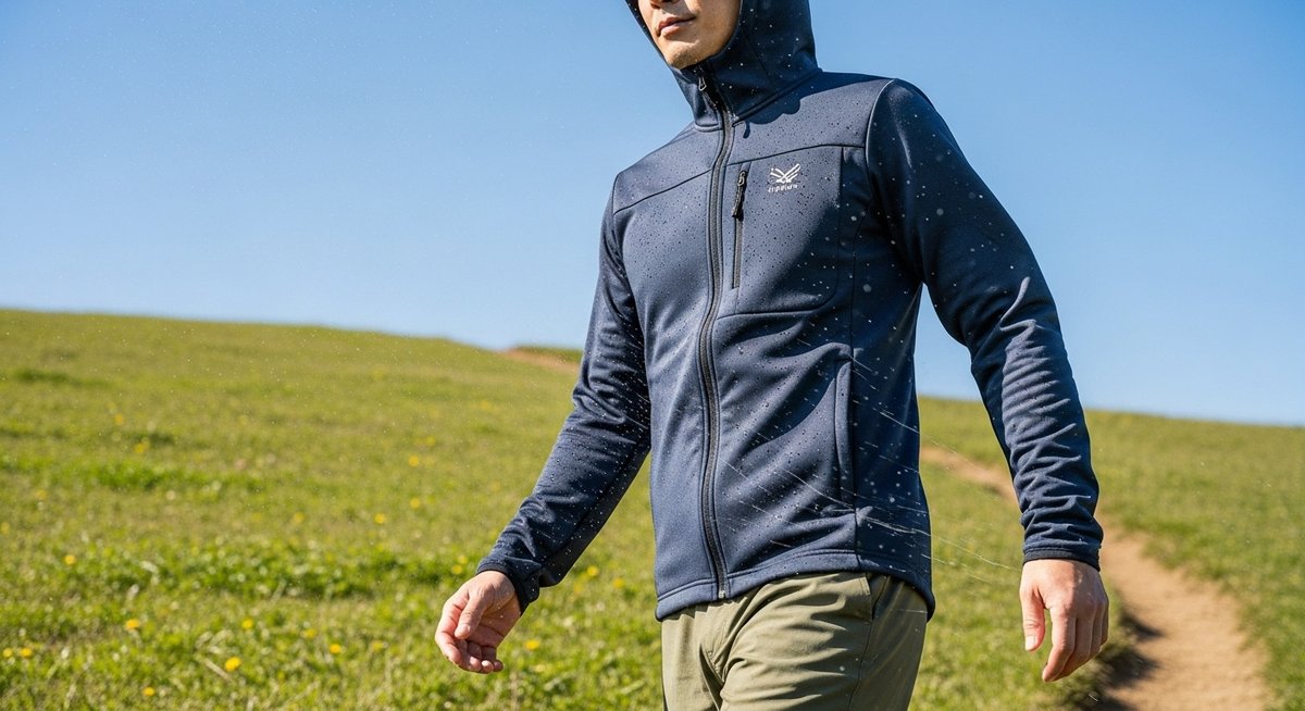 運動量の多い場面でマウンテンソフトシェルフーディを着用する場合、透湿性は欠かせない要素です。透湿性とは、衣服内の汗や湿気を外に逃がす機能のことで、これがあるおかげで「内部が蒸れてベタつく」という不快感を軽減できます。