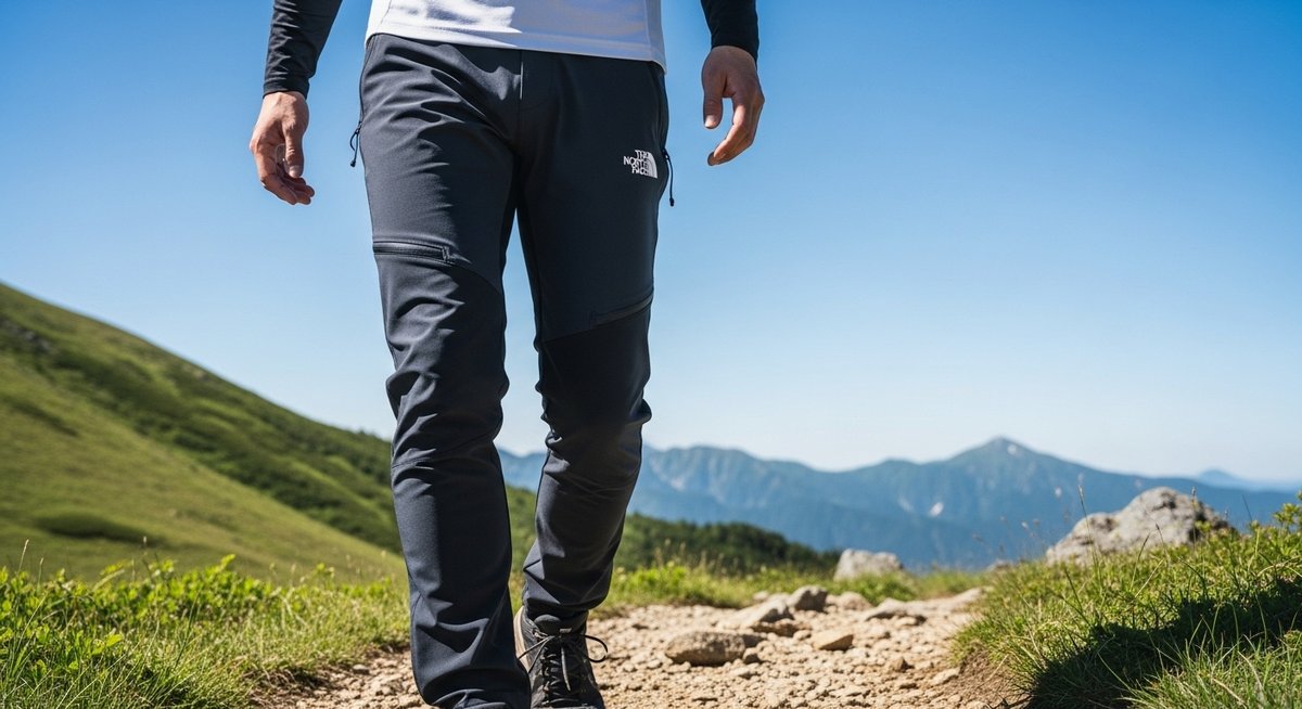 次に注目すべきは、生地のストレッチ性能です。ノースフェイスのパンツの多くはポリウレタンを混紡した伸縮性の高い素材を使用しており、脚の動きを妨げない工夫が随所に施されています。特に膝部分が立体裁断になっているモデルは、屈伸運動が非常にスムーズです。