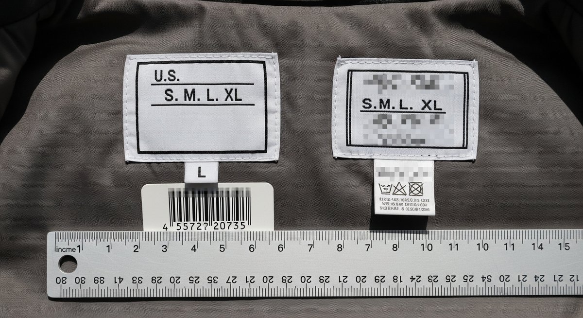 ヌプシジャケットがUSモデルかどうかを判断する際、最も信頼できるのは製品の内側に隠された情報です。見た目だけで判断するのは難しい場合もありますが、タグに記載されている言語や品番の構成、そしてサイズ表記の仕方を注意深く見ることで、その個体がどの市場向けに作られたものかがはっきりと分かります。まずは、手に取った瞬間に確認できる重要なポイントから解説します。