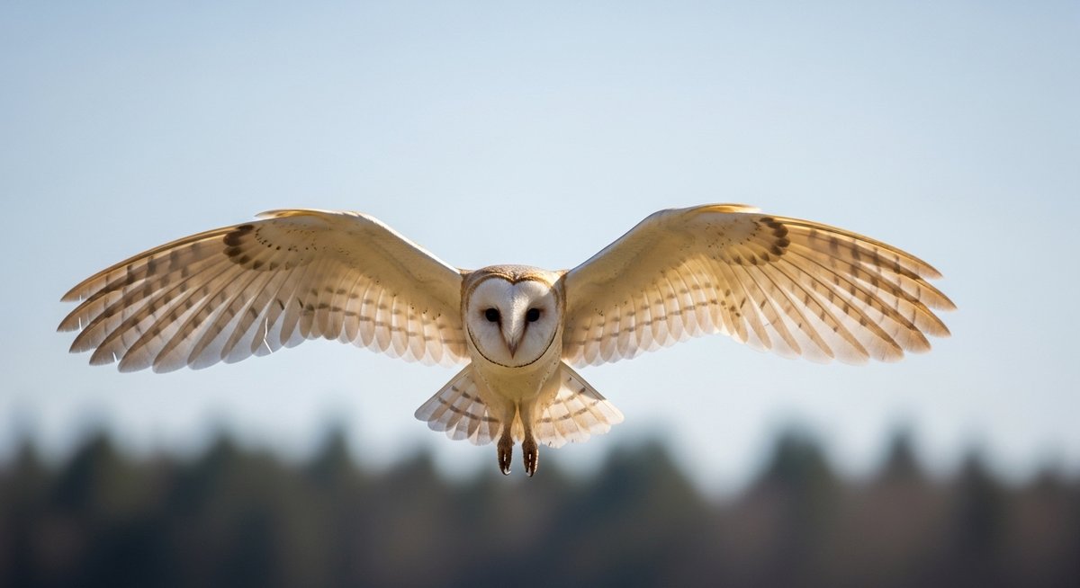 メンフクロウは白っぽい顔盤と淡い体色が特徴で、夜間でも目立ちにくい色合いです。顔盤が大きく音を集めやすい形をしており、聴覚と視覚の両方で狩りに適した構造を持っています。