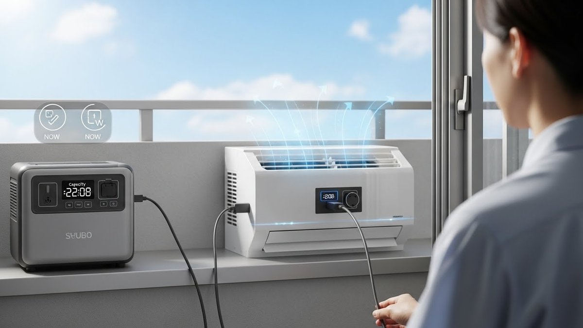 ポータブル電源は高温下で性能が落ちたり安全機能が働く場合があります。直射日光や密閉環境は避け、風通しの良い場所に設置してください。エアコン本体も同様で、屋外機や室外の放熱が妨げられると消費が増えます。