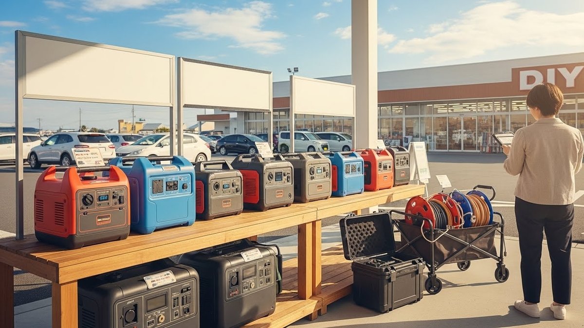 ホームセンターでは工具やイベント用品のレンタルサービスを行う店舗があり、場所によってはポータブル電源の貸出があることもあります。ただし品揃えや機種の幅はネットレンタルに比べて限られる場合が多いです。