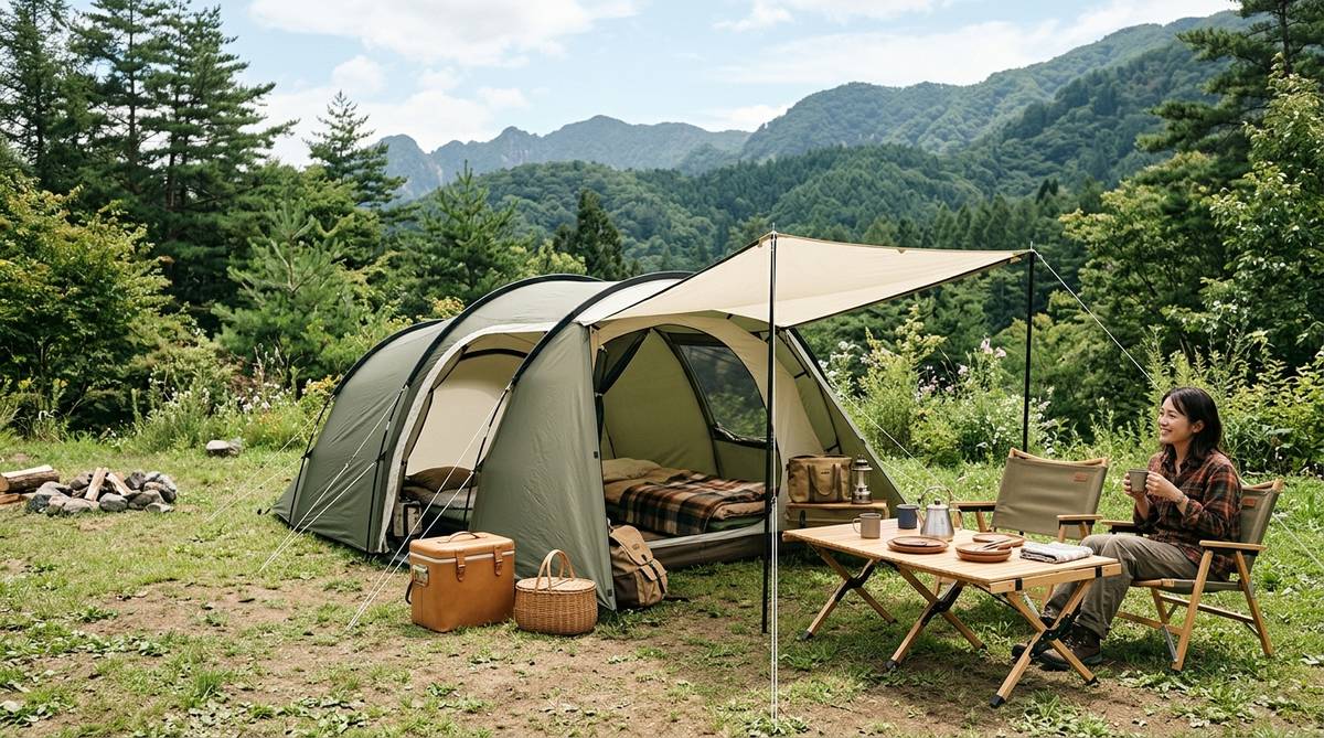 例えば、トンネル型とドーム型では、頭上の空間の広がり方が全く異なります。椅子に座って過ごすスタイルなのか、お座敷スタイルでゆったりしたいのかによって、最適な形状は変わってきます。また、前室の広さも重要な比較ポイントです。雨天時に前室で調理ができるか、靴や荷物を濡らさずに置けるスペースがあるかなど、実際のキャンプシーンをシミュレーションしながら有効面積を確認しましょう。