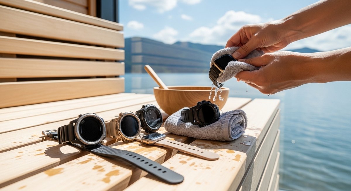 サウナでスマートウォッチを愛用し続けるための最も基本的かつ効果的なメンテナンスは、使用後の「水洗い」を徹底することです。サウナでかく汗には塩分だけでなく、皮脂や老廃物も多く含まれています。これらがデバイスの隙間や心拍センサーの表面、充電端子に付着したまま乾燥すると、時間の経過とともに固着し、センサーの精度低下や金属部分の腐食、さらには肌荒れの原因となってしまいます。サウナから上がった後は、必ず真水でデバイス全体を優しく洗い流す習慣をつけましょう。