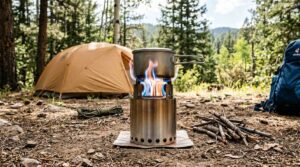 ソロキャンプでは機動力を重視し、3ユニットの通常フレームを選びます。必要最小限の装備で本格的な調理が楽しめるスタイルです。
