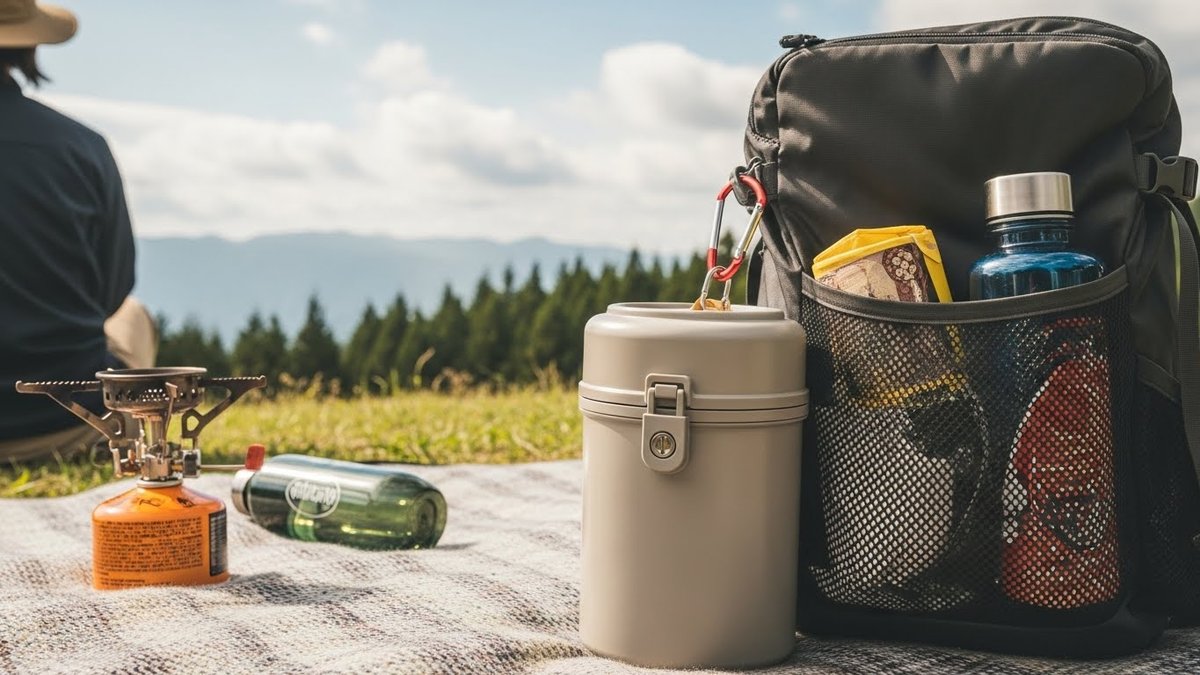形状や容量は、持ち運び方法や滞在日数に合わせて決めてください。平たい形はテントの隙間に収まりやすく、丸い形は収納時に他の物と重ねられる利点があります。自分の持ち物と一緒にパッキングしてみて、無理なく収まるか確認すると良いでしょう。