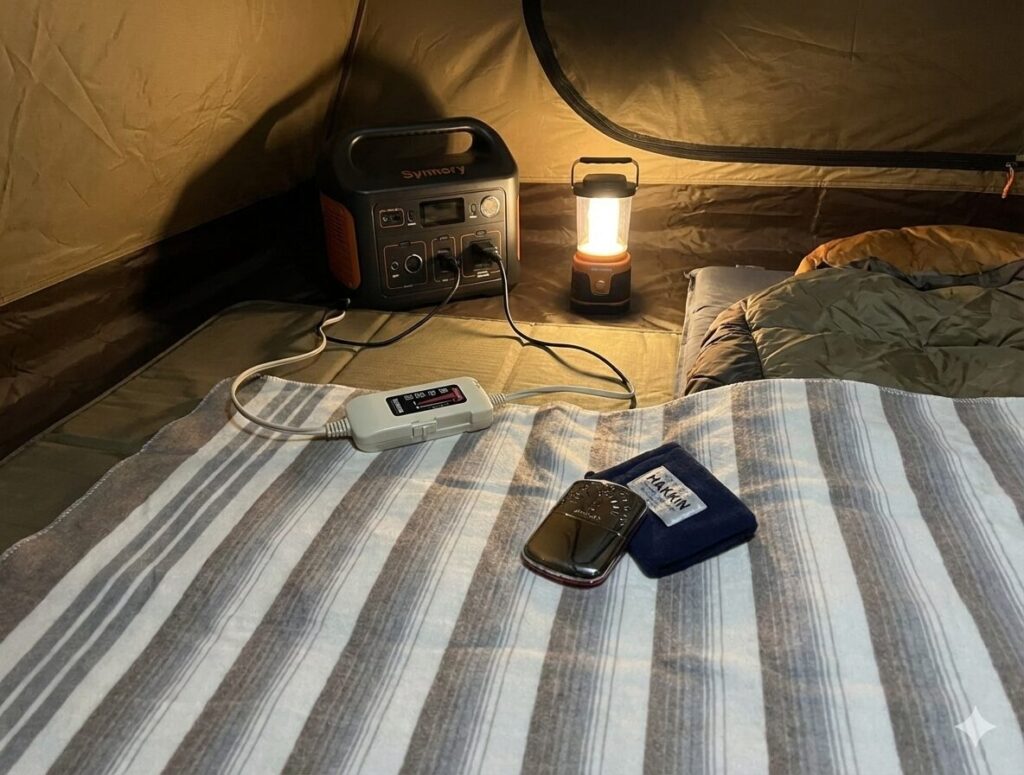 電気毛布や電気アンカは就寝時に局所的に温めるのに適しています。消費電力が比較的低く、ポータブル電源でも一定時間使用可能です。
