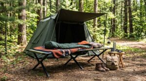 例えばテントであれば、ポールを通すだけで自立するタイプや、中心に一本のポールを立てるだけのワンポールテントがおすすめです。これらは構造がシンプルで、慣れれば5分から10分程度で寝床を完成させることができます。