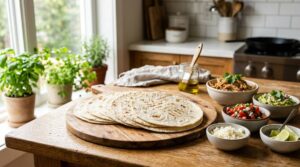 焼いた後の生地は、乾いた布巾や専用のトルティーヤウォーマーに包んでおくと、余熱でさらに柔らかくなり、最後まで温かい状態で食べることができます。
