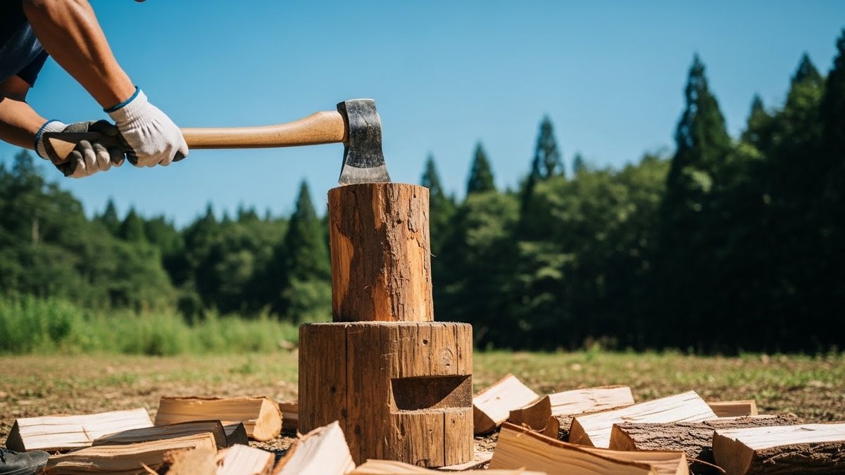 意外と軽視されがちなのが薪割り台です。地面に直接置いて薪を割ると、衝撃が逃げてしまい割れにくいだけでなく、斧の刃が地面の石に当たって欠けてしまうリスクがあります。カシやナラなどの硬い広葉樹の丸太を台にすることで、薪を安定させ、斧の力を効率よく伝えることが可能になります。作業者の膝への負担も軽減されるため、適切な高さの台を用意することは薪割りの質を大きく変えます。